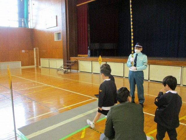 今日は、警察の方に歩行指導をしていただきました。小学校に入学してから、毎日歩いて登下校している1年生。改めて、横断歩道や踏切りの渡り方、車の方が道を譲ってくれた時のお礼の仕方などを教えていただきました。1回目は、丁寧に説明してもらいながら歩き、2回目は自分たちだけで正しく道を渡ることができるか確かめました。