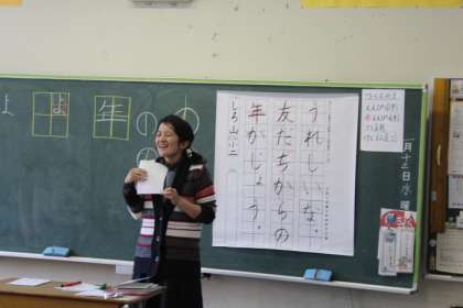 今日は、書き初め会に向けた練習で、前回練習した「の」の字が、難しそうだったので、丸い形をイメージしながらもう一度練習しました。