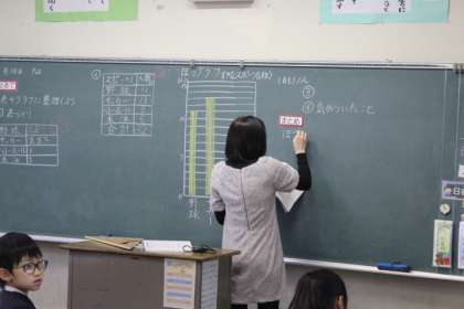 「棒グラフは、見ただけで大きさがよくわかる。」「棒の長さで、数の大きさを比べることができる。」等、棒グラフのいいところをたくさん見つけることができました。