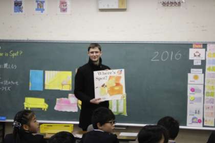 英語の絵本「Where is the Spot? 」は、とても楽しいお話で、動物のいる場所をさがして英語で答えることを、集中してできました。