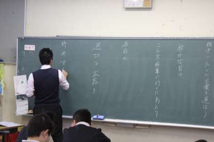 「昆虫採集を」「虫取り」に変えたり、「適切な容器」を「ちょうどいい入れ物」に変えたりして、文を考えました。相手に応じて言葉を選ぶことが大切なことを勉強しました。