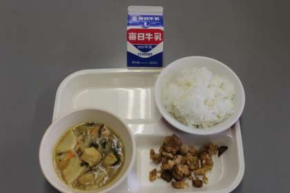 今日の給食の献立は、ごはん・厚揚げとタケノコの中華炒め・チキンチキンごぼう・牛乳です。ごちそうさまでした。