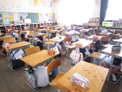 防災訓練① 公開日 2011/09/09 更新日 2011/09/09 トピックス 9月9日(金) 防災(地震)訓練をおこないました。 午前10時、校内放送で「地震発生 ただいま和歌山県で大きな地震が発生しました。机の下などに体を入れて机のあしをもって、揺れのおさまるのを待ちましょう。」 とのコールで訓練が始まりました。 続いて、「先生の指示に従って速やかに運動場に避難しなさい。」の合図で避難を開始しました。 いいね(0)