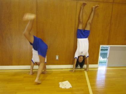 写真上:逆立ちの特訓中です。