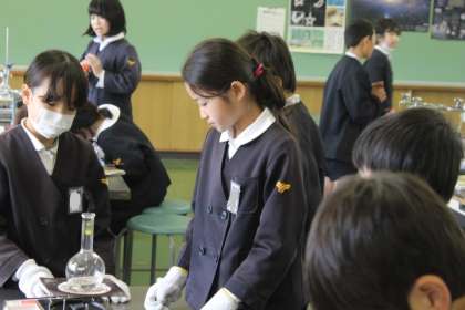 班のみんなと協力して、実験から記録、そして片付けまで、よく頑張っています。