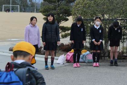 今日のあいさつ運動は、縦割り活動班9班の担当です。9班の5・6年生は、いろいろな縦割り活動の中で、下級生の面倒をやさしくみてくれる人たちでした。