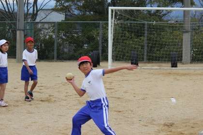 今日の体育の時間は、「ボール投げ」のテストをしました。