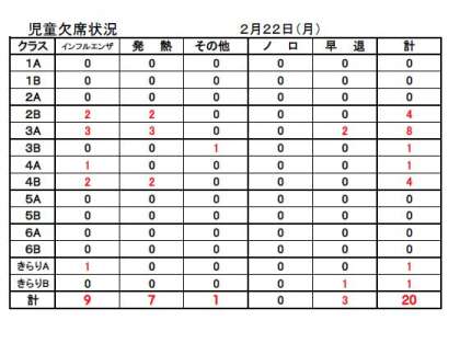 ☆ 2月22日(月)の欠席状況