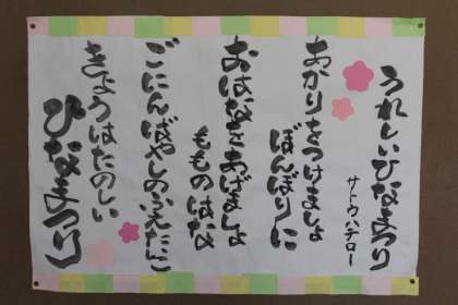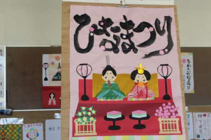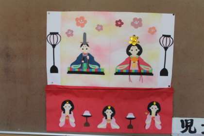 校内の壁面飾りに、ひな祭りが登場です。