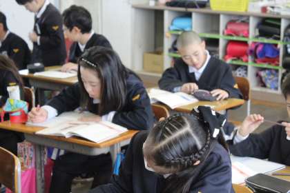 今日は場面分けをした後、1の場面を全員で読み、1の場面の心に残ったことをノートに書きました。