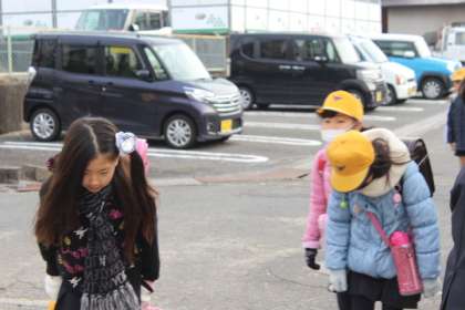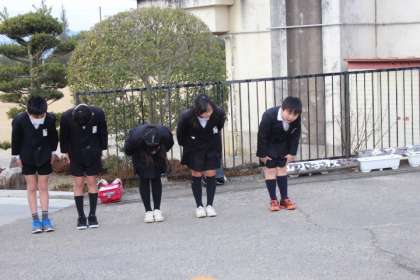 今朝の担当は、縦割り10班です。朝から元気なあいさつをすると元気がでます。