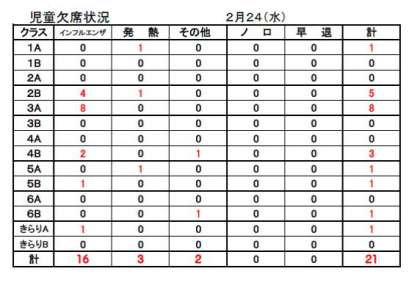 インフルエンザでお休みする人が増え、3年A組と2年B組が25日・26日と学級閉鎖をすることになりました。