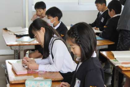 調べていました。聞いている人も、発表をよく聞き、あとで