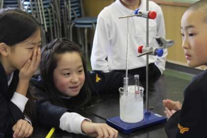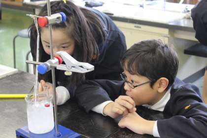試験管の水がどんどん凍っていくのを、みんな、真剣な表情で観察していました。