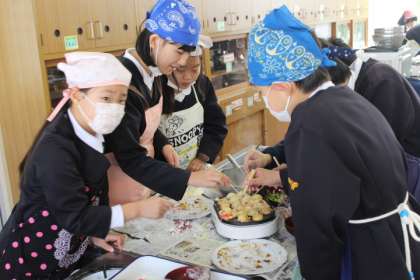 作っている最中、「先生、食べて。」とうれしい声。食べに行ってみると、激辛たこ焼きだらけでした。「おいおいおいー!」と思いながらもいじられるのが、ちょっとうれしい担任でした。もちろん普通のたこ焼きも食べさせてくれました。どれもおいしくできていてすごかったです。