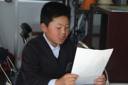 発表しました。今日は、5年B組の3名です。