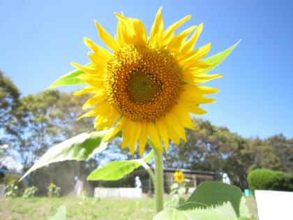 お盆前に植えたヒマワリの種、鮮やかに咲き始めました。