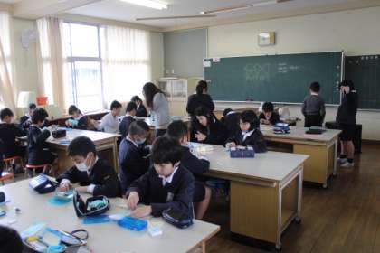 ☆ 5A 家庭 公開日 2016/03/10 更新日 2016/03/10 5年生 3月10日(木) 裁縫の復習をしました。 なみぬい・本返しぬい・半返しぬい・かがりぬいの縫い方を復習していきます。 点と点を結んで、デザインを縫っていきました。みんなしっかり覚えられていたので、うれしかったです。 いいね(0)