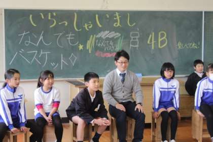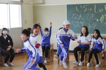 今日、6Bとみんな遊びをしてくれたのは、4Bさん!図工室に招待して「なんでもバスケット」をしました。
