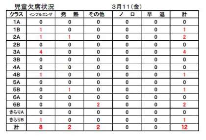 ☆ 3月11日(金)の欠席状況