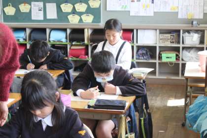 ☆ 4A 理科 公開日 2016/03/11 更新日 2016/03/11 4年生 3月11日(金) 理科「水のゆくえ」のまとめをしました。 昨日、実験した結果から「結ろ」ということばとその意味について勉強しました。 寒い日に部屋に結露ができていることを知っている子もいました。なぜ、結露ができるか、わかったかな。 最後に、プリントで復習をしました。 いいね(0)