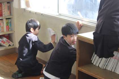 ☆ 4B 大掃除 公開日 2016/03/11 更新日 2016/03/11 4年生 3月11日(金) 今日は、大掃除でした。教室ではワックスをかけるために、最初に教室の机類を全部出して、教室の床の大掃除をしました。 その後、窓や壁をふきました。 階段や外掃除の分担の子も、時間をかけて、とても丁寧に掃除をしてくれました。 子ども達は、大活躍でした。 「すごくきれいになったよ。」 「楽しいなあ。」 「もっとしたいなあ。」 など、うれしい言葉もたくさん聞こえてきました。 いいね(0)