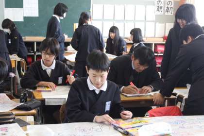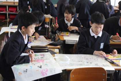 ☆ 6B マイバッグのデザイン 公開日 2016/03/11 更新日 2016/03/11 6年生 3月11日(金) 今日も引き続き作品バッグの作成をしております。 今回はたまたま林校長先生が写真を撮りに来られたので、「校長先生、書いて!」とおねだりしていました。すると僕も私もとどんどん子どもたちが群がり行列ができるほどでした。 いい記念になりましたね! いいね(0)