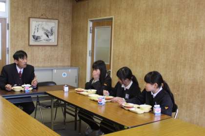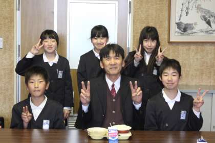 いつもの「校長先生〜、一緒に食べましょう〜。」から始まる