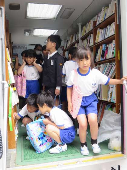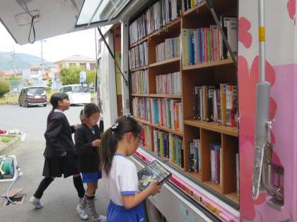 今日は、橋本市の自動車文庫「ブッキー号」の巡回の日です。