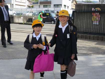 休み明けの月曜の朝です。「荷物がいっぱいで重い〜。」と、笑顔で話してくれる子がたくさんいました。
