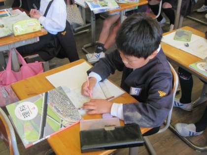 種の大きさを定規で測ったり、手ざわりを確かめたりしながら、