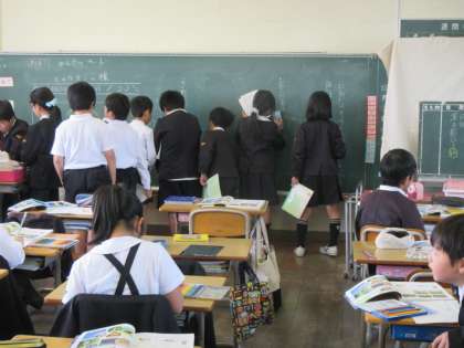 においを調べた人もいました。発見したことを黒板に書いていきました。