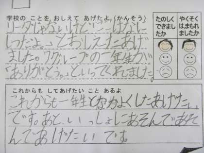 昨日、1年生とのなかよし会をしたことを振り返りました。