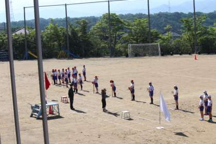 運動会に向け、今日から6年生の朝練習が始まりました。