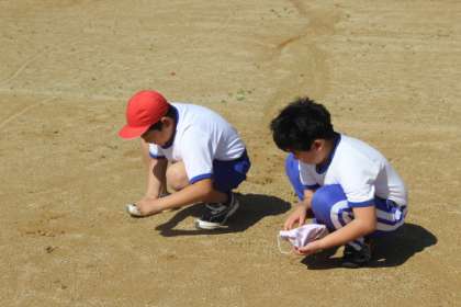 みんなが練習するときに、痛い思いをしないようにと、がんばって石拾いに取り組んでいました。