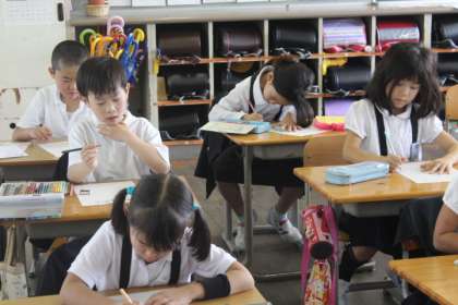 学校に戻ってから、プリントにまとめを書きました。色を付けてきれいにしたり、わかったことや感想を書きました。