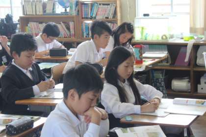 今日の社会は、「沖縄の暮らしの工夫を知ろう。」ということで、家の写真を見ながら、どのような造りの工夫をしているのか考えました。