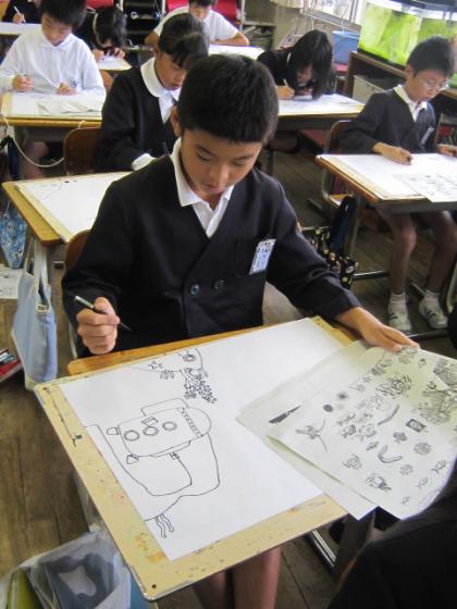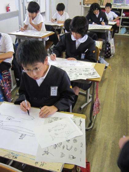「海中にすむ魚」にイメージをふくらませて描いていました。