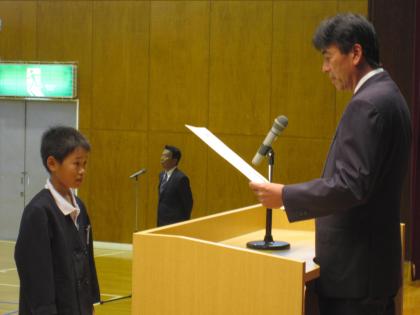 団体部門『みんなで8の字とび』に参加した5年A組が、前期の部で6位に輝き、表彰をしていただきました。