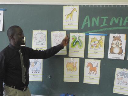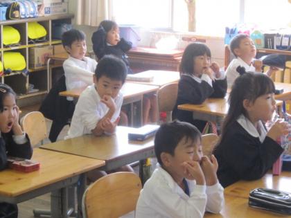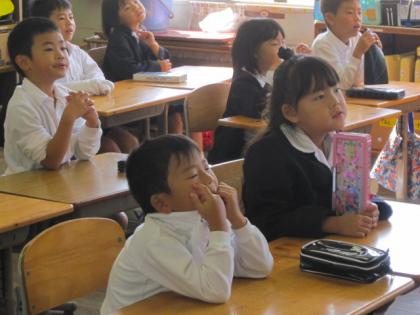 ジョンソン先生(ALT)が、動物の絵を示し、それを一斉に声に出して発音していました。どの子もみんな楽しんでいました。