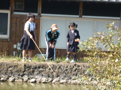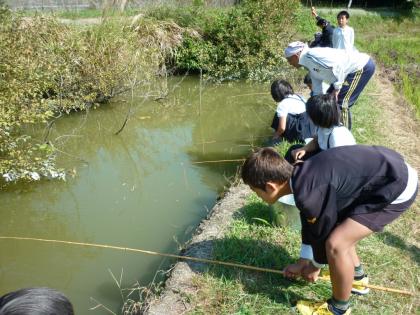 10月19日(水) E組☆3校交流会 ザリガニ釣り①