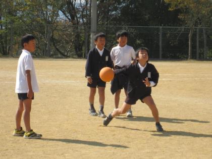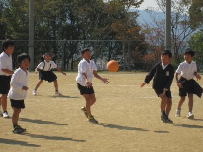 3年生のドッジボール、投げるスピードも速くなり、ボールを受けるのもうまくなってきました。1年生も入って一緒に遊んでいます。