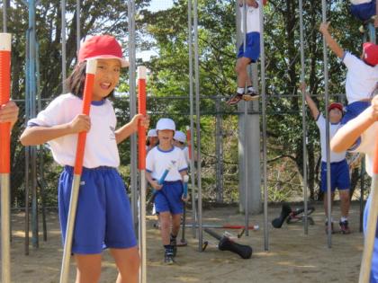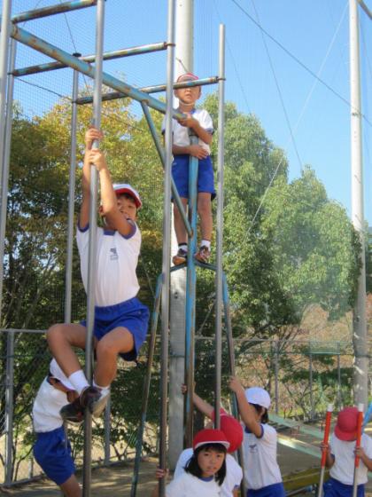 写真上:のぼり棒は、ぼくらにとって得意な遊具。