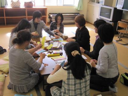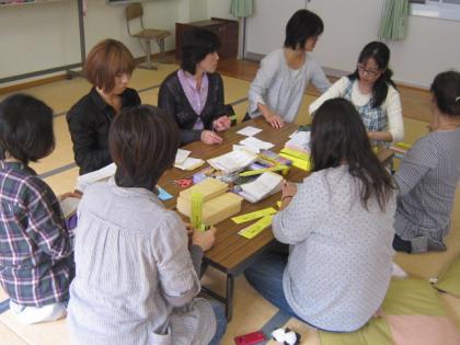 11月3日(木)〈文化の日〉におこなわれる、バザーに向けてPTA本部役員さんと専門部バザー担当の方に集まっていただき、前売りチケットの仕分け、集金額の確認、申込みのあった人(家庭)を確認しながら、それぞれにチケットを入れていく作業をしていただきました。