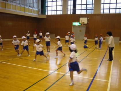 写真上:逃げろ〜 ボールもしっかり見なくちゃね