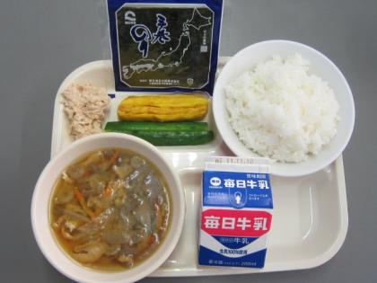 今日の献立は、手巻き寿司・ごじる・牛乳です。