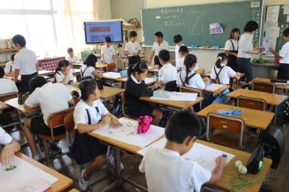草花の重なりや配置に工夫して、みんな一生けん命描いていました。