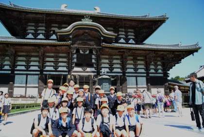 大仏殿を見た後は、若草山に移動して、お昼ご飯。おうちの人に作ってもらったお弁当をおいしそうに食べていました。今日はとても天気が良かったので、暖かな日のもと、気持ちのいいお昼ご飯になりました。