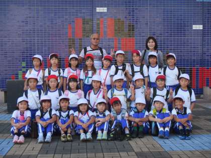 久しぶりのいお天気でみんな笑顔で出発しました。行きのバスの中では歌をうたったり、クイズをしたり、お友だちとおしゃべりしたり楽しくすごしました。着いてすぐみんなで写真をとりました。ジンベイザメやエイなど、たくさんの魚たちを見ました。途中、お腹が減ったという声があちこちから聞こえてきました。大勢の人でいっぱいでしたが大きな水槽で泳ぐいろんな魚を堪能しました。
