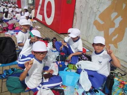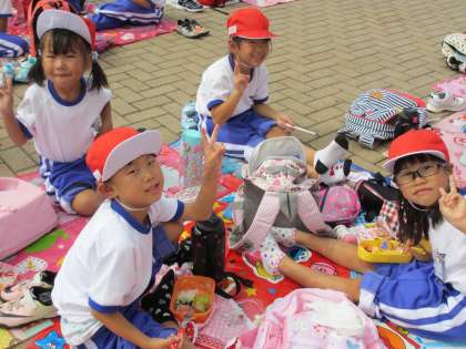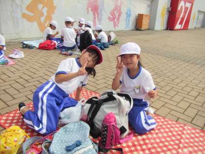 「ジンベイザメが、大きくて、かっこよく泳いでいたね。」など、友達とお話しながら、食べました。